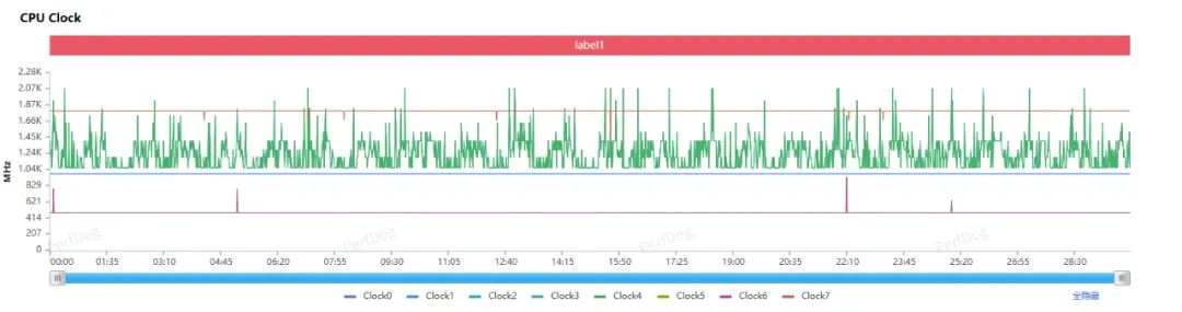 我们又拉了一下测试中的 CPU 频率,看看 CPU 有没有在开风扇的情况下做更激进的调度 —— 结果是并没有。