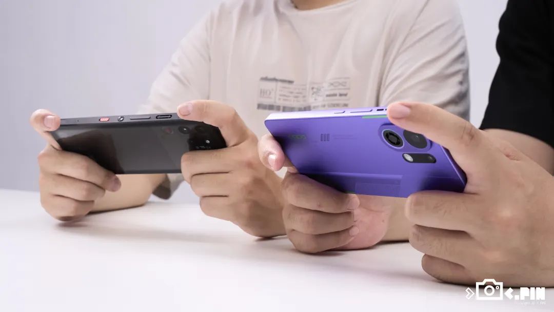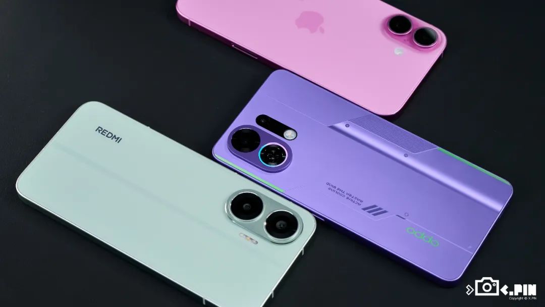 另外,OPPO 这次也和红米的 Turbo 4 一样,选择把镜头设计成了果果的模样。三台手机放在一起多少有点儿 “ 兄弟情 ” 在里面 —— 看起来市场已经用销量教育过各家的产品经理了,致敬 iPhone 的设计虽然面子上不好看,但里子不翻车。。。